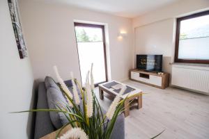 Apartament z balkonem. This spacious apartment comes with 1 living room, 1 separate bedroom and 1 bathroom with a bath and a shower. Guests can make meals in the kitchen that features a stovetop, a refrigerator, a dishwasher and kitchenware. Boasting a balcony with garden views, this apartment also features soundproof walls and a flat-screen TV with satellite channels. The unit has 2 beds. Apartament - 4 osobowy. Powierzchnia pokoju ok.: 63 mkw.
